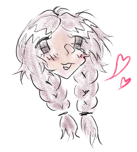 this doodle on the right is an accurate depiction of my face ! i like this hairstyle because it is cute (and it is also easy to do) ! you might be wondering, did i name an oc of mine after myself ? the answer is yes.